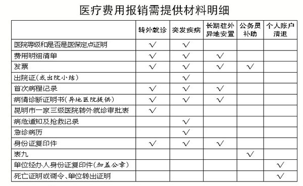注:1、转外就诊人员出外就医前必须办理手续:提前出具昆明市一家三级医院转外就诊审批表及病情诊断证明书,由医院签字盖章后交医保中心窗口备案留存。