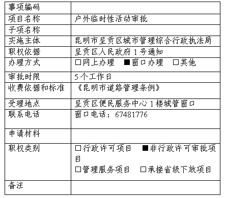 户外临时性活动审批行政权力清单目录 (内部审批类)
