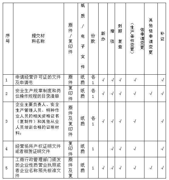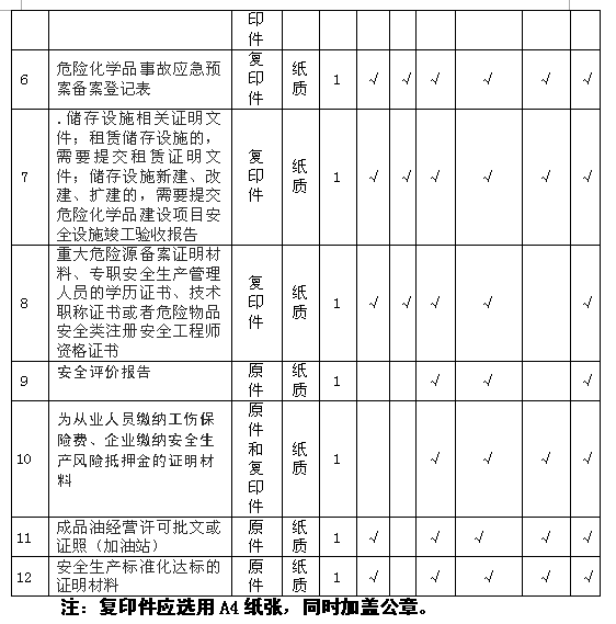 危险化学品经营许可证申请材料目录
