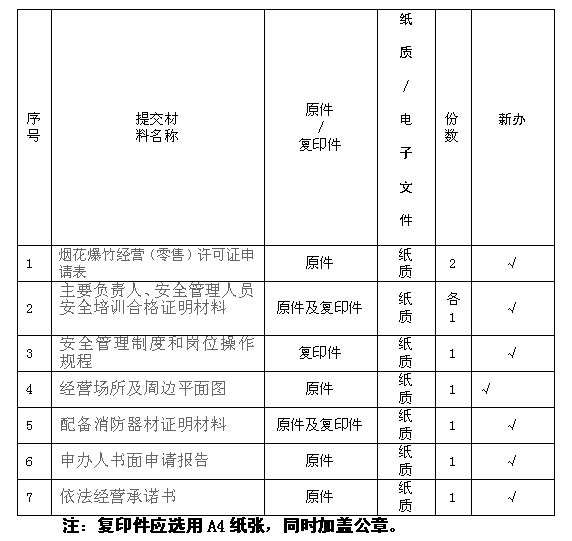 烟花爆竹经营(零售)许可证申请材料目录