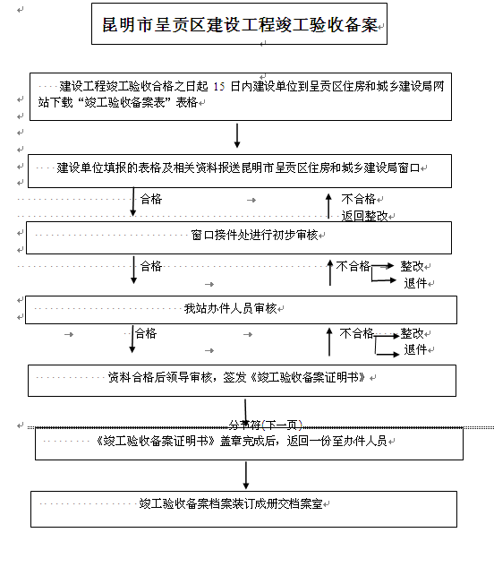 法律依据:国务院《建设工程质量管理条例》第四十九条;《房屋建筑工程和市政基础设施工程竣工验收备案管理暂行办法》(建设部令第78号);《云南省建设工程竣工验收管理办法》(云南省住房和城乡建设厅第16号公告第四章第十一条、第十二条、第十三条、第十四条;《昆明市建设质量管理办法》(昆政发〔2001〕3号)第二十四条、第二十五条、第二十六条。