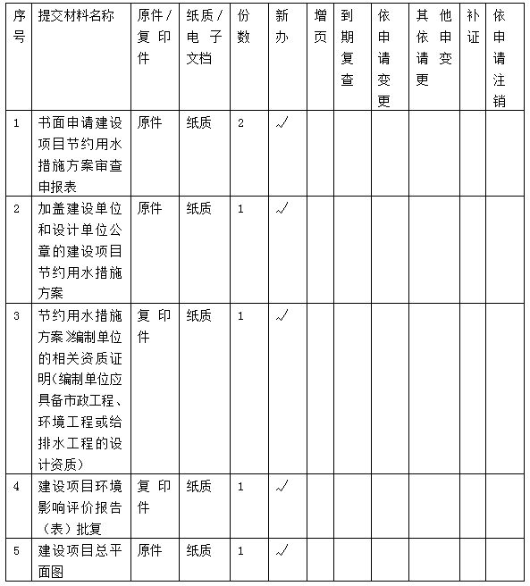 节水措施方案审查申请材料目录
